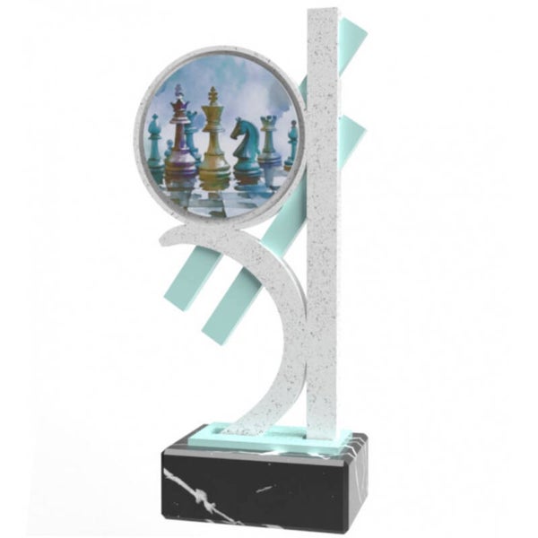 La base de marmol podría llevar grabados detalles específicos, como el nombre del evento, la categoría, la fecha y cualquier otro elemento relevante. Esto permite una personalización adicional para adaptarse a la ocasión