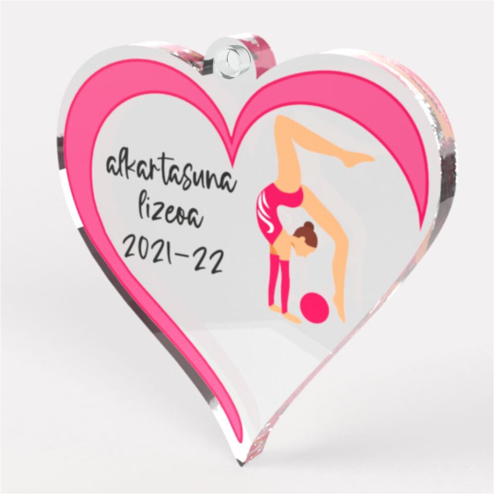 Medalla con forma de corazón, fabricada en material acrílico y cinta incluida de 1cm. color a elegir.