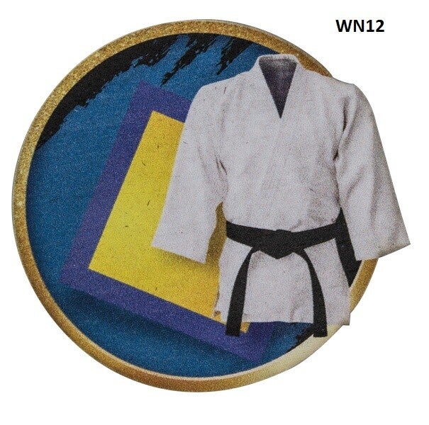 Medalla de madera de 3mm de grosor, al ponerle el disco queda una medalla de 7mm de grosor, impresa a todo color.