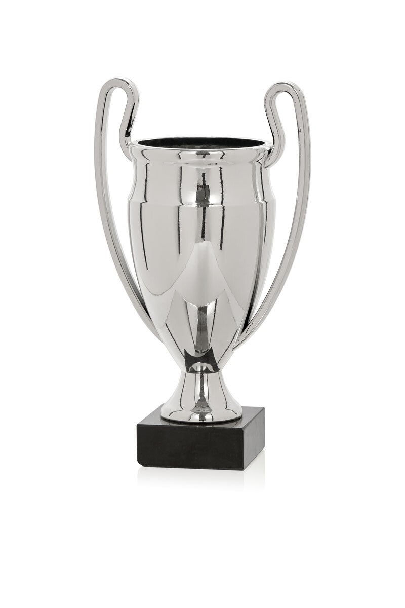 Copa con asas en ABS metalizado y base de mármol.