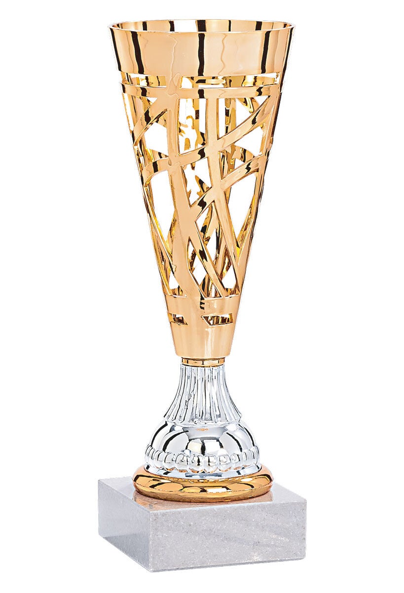 Copa promoción fabricada en ABS metalizado y base de mármol.