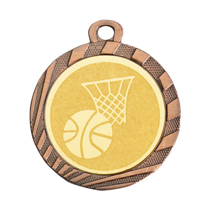 Medalla de 3.2 cm de diámetro con disco de 25mm en oro, plata o bronce.