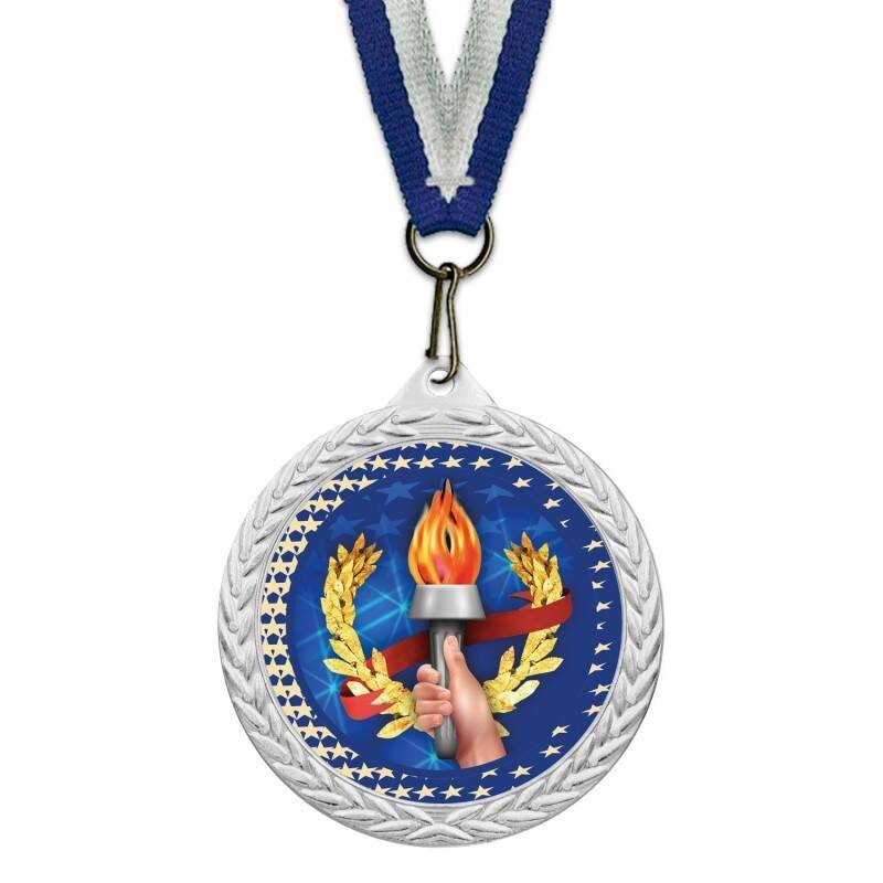 Medalla de 55mm de diámetro en color oro, plata o bronce.