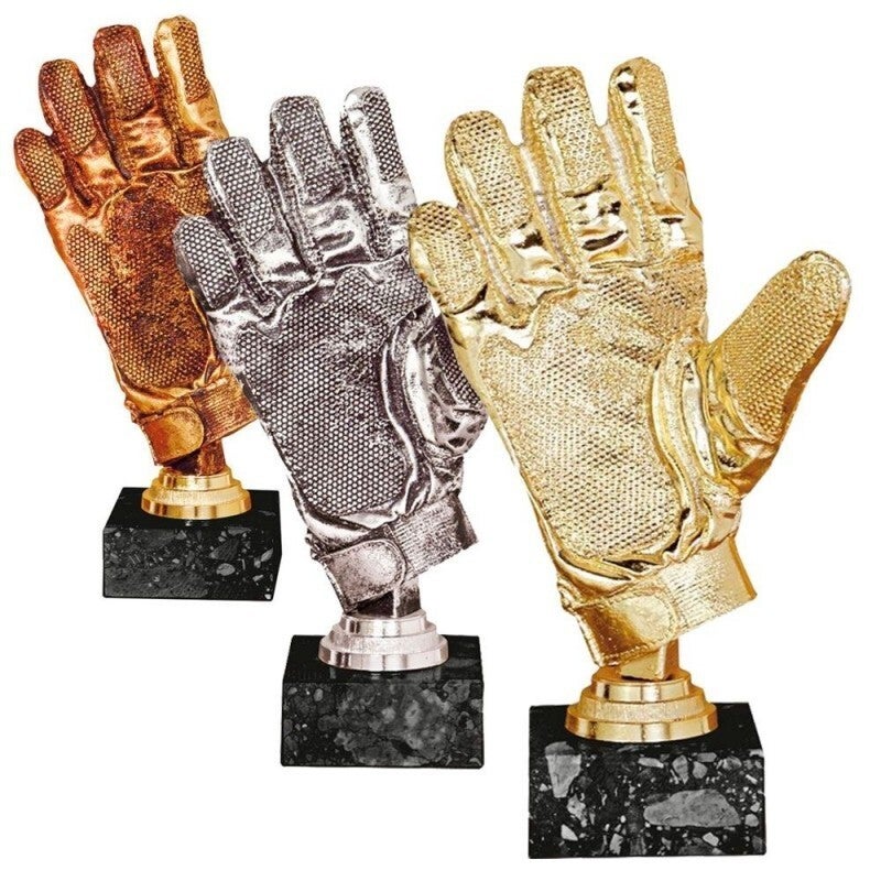 TROFEO RESINA GUANTE FÚTBOL con base de MÁRMOL