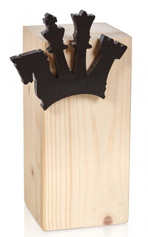 Taco de madera de 90x90 mm con motivo y grabación incluida.