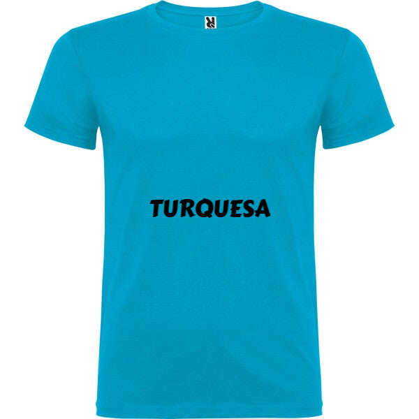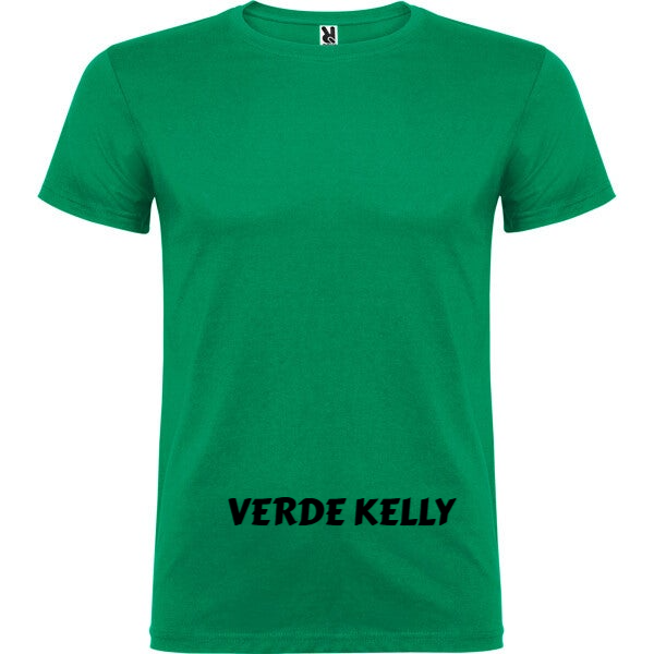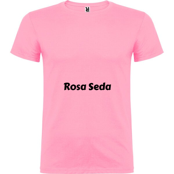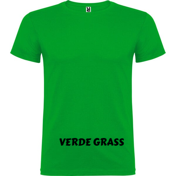 Camiseta de manga corta de cuello redondo doble con elastano, confeccionada en tejido tubular en tallas de adulto, y con costuras laterales en tallas de niño, con cubrecosturas reforzado en cuello.