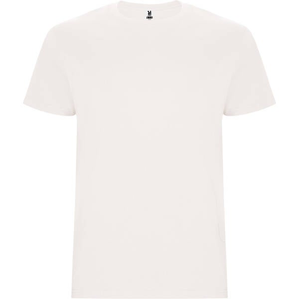 Camiseta de manga corta tubular en tallas de adulto y costuras laterales en tallas de niño. Cuello redondo en canalé 1x1. Cubrecosturas en cuello del mismo tejido.