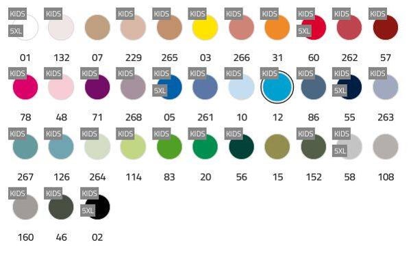 Material: 100% algodón, punto liso. Color gris vigoré 58: 85% algodón / 15% viscosa