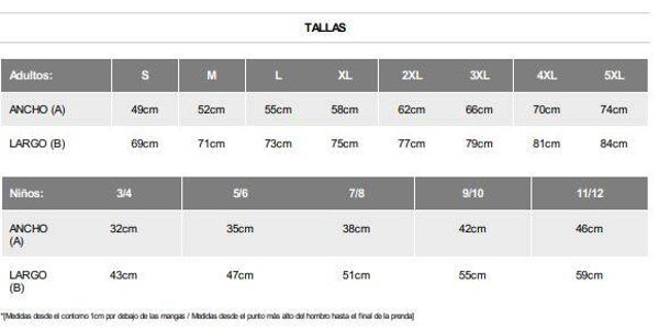* Tabular en tallas de adultos, costuras laterales en talla de niño.
