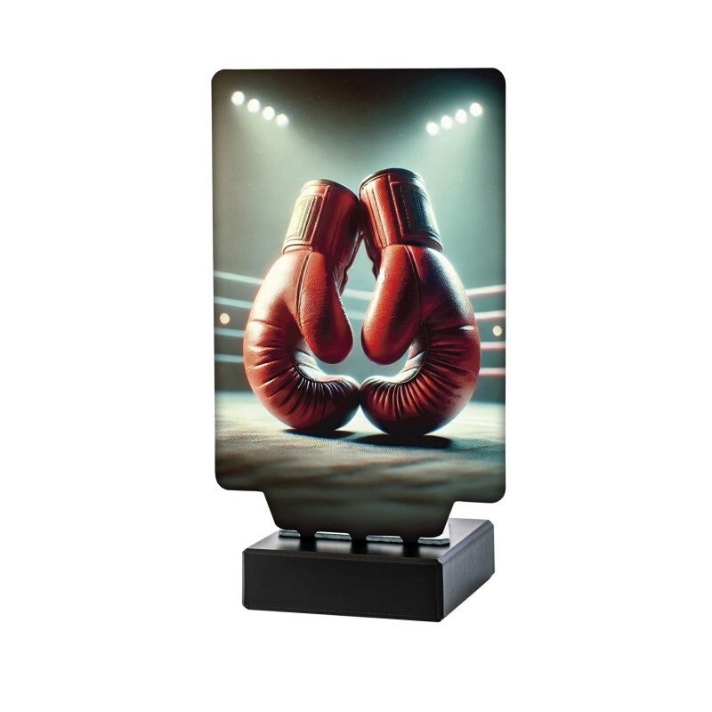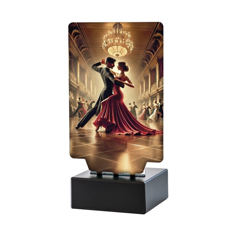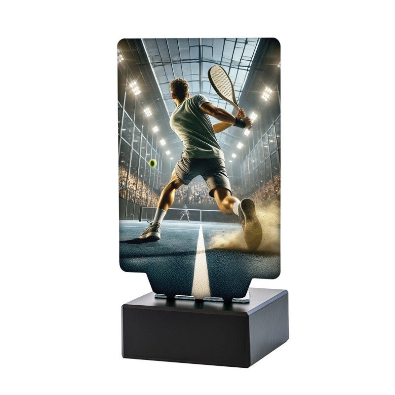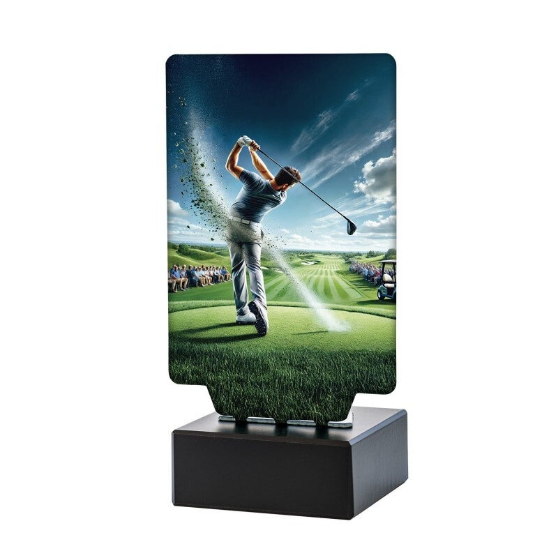 Trofeo serie Aura realizado en acero y base de mármol negro.